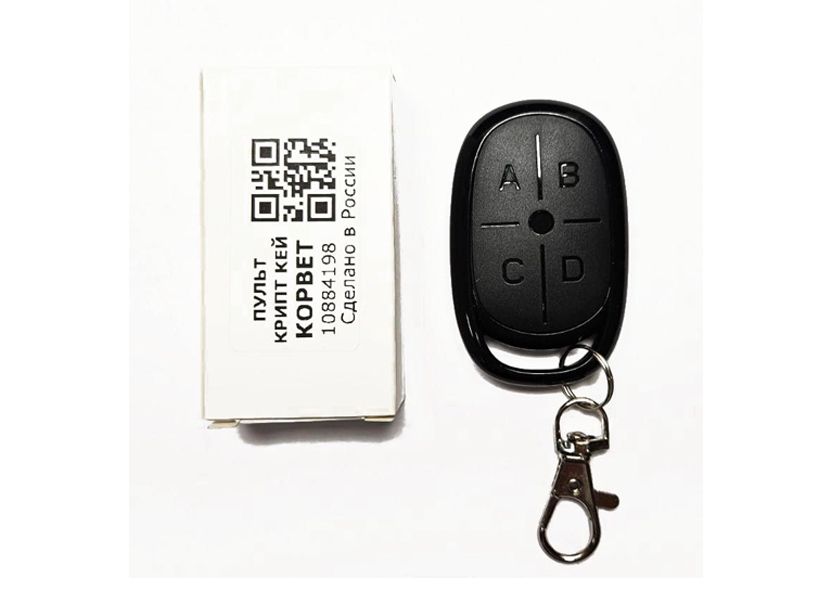 Пульты «КРИПТ КЕЙ «КОРВЕТ» защищены от копирования/клонирования и записываются в исполнительный блок моделей «Корвет» с помощью клавиш записи на канал реле или через приложения, путем ввода серийный номер пульта или сканирования QR кода на коробке.