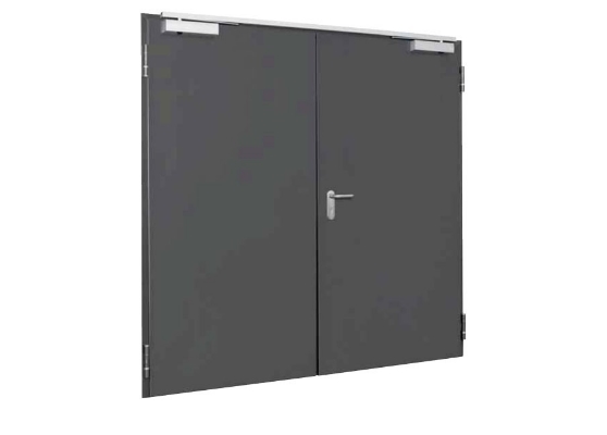 2-створчатые огнестойкие и дымонепроницаемые двери серийно оснащены доводчиком с рычажным механизмом (без рис.). Механическое регулирование последовательности закрывания обеспечивает корректную последовательность закрывания обеих дверных створок.