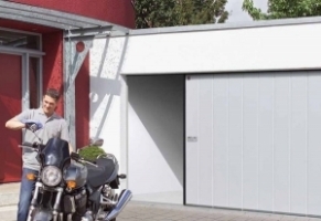 Технические решения для реальных условий Калитка без порога. Для обеспечения простого прохода в гараж рекомендуется калитка. Вы сможете, не открывая ворота гаража, выкатить велосипед или взять садовый инвентарь |