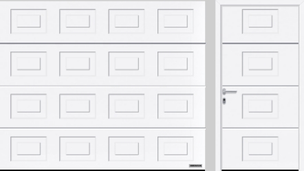 Полотно секционных гаражных ворот состоит из нескольких стальных двустенных секций, заполненных вспененным полиуретаном. Глубина (толщина) панелей ворот = 42 мм. Секции ворот выполнены из горяче оцинкованной стали с полиэстеровым грунтовочным покрытием с обеих сторон. Коэффициент теплоизоляции панелей U = 0,5 Вт/(м² К), что соответствует теплопроводности стены из кирпича в 1200 мм. Такие ворота не занимают места как в гараже, так и перед ним. Они могут быть установлены в проёмы любых форм. Максимальные размеры - 7000 х 3000 мм (ширина х высота).
