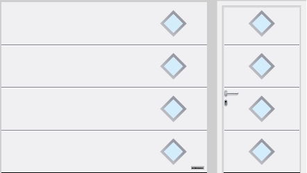 | T-гофр (LPU 42), мотив 501 со сплошными вставками под нержавеющую сталь или цвета RAL по выбору, белого цвета | T-гофр (LPU 42), мотив 500 с частичными вставками под нержавеющую сталь белого цвета | Элемент серии Design с остеклением из пластмассы и рамкой из нержавеющей стали |
