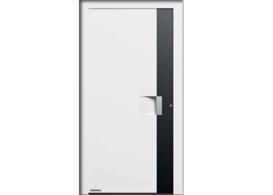 Входная дверь Hormann ThermoCarbon Мотив 301 Предпочтительный цвет серого антрацита RAL 7016, матовый, алюминиевые вставки, установленные заподлицо, и ручка-планка цвета белого алюминия RAL 9006